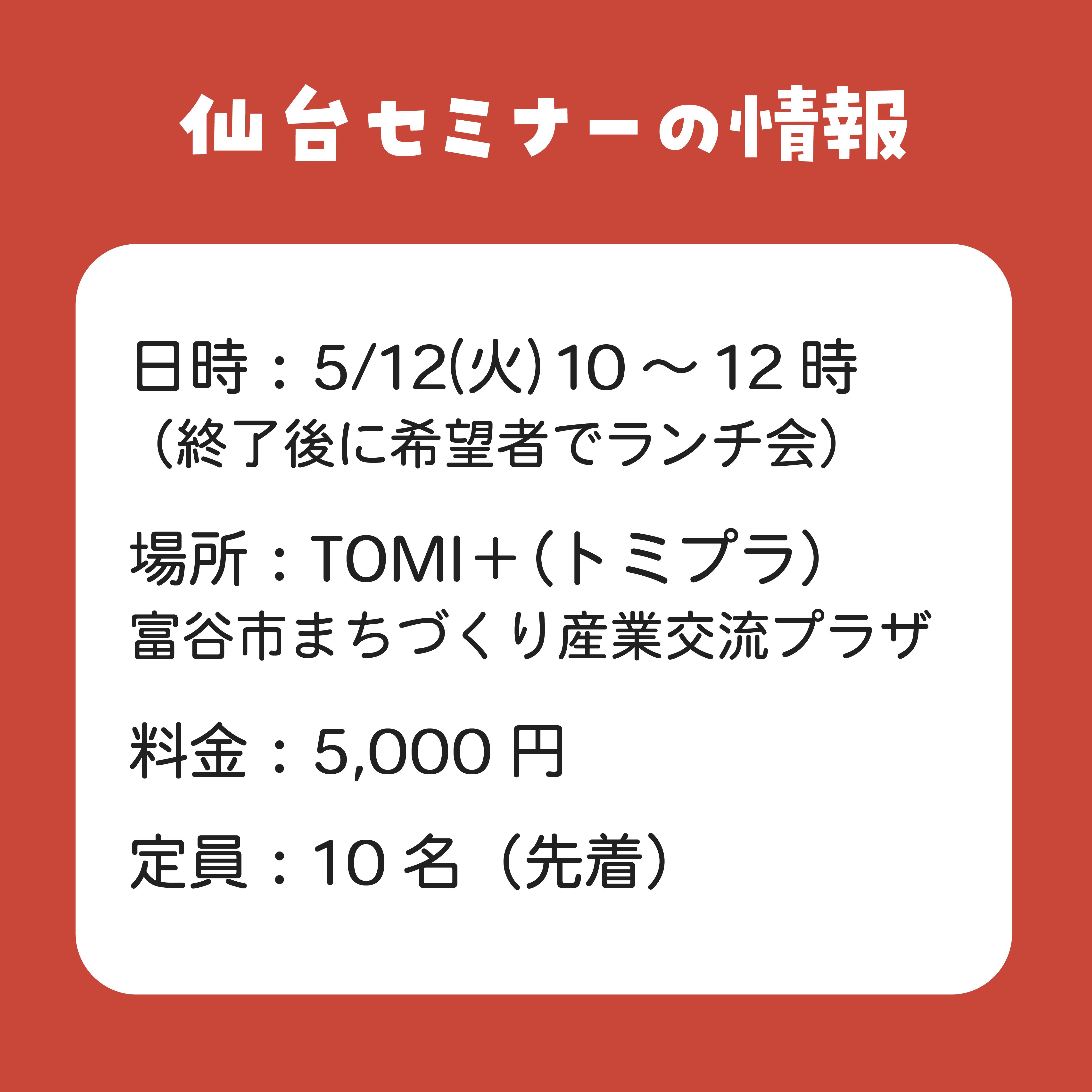 1)「仙台セミナー」のご購入後、1〜2日を目安に「この後の流れ」などをメールでご案内します。