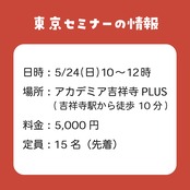 東京セミナー 5/24(日)10時〜