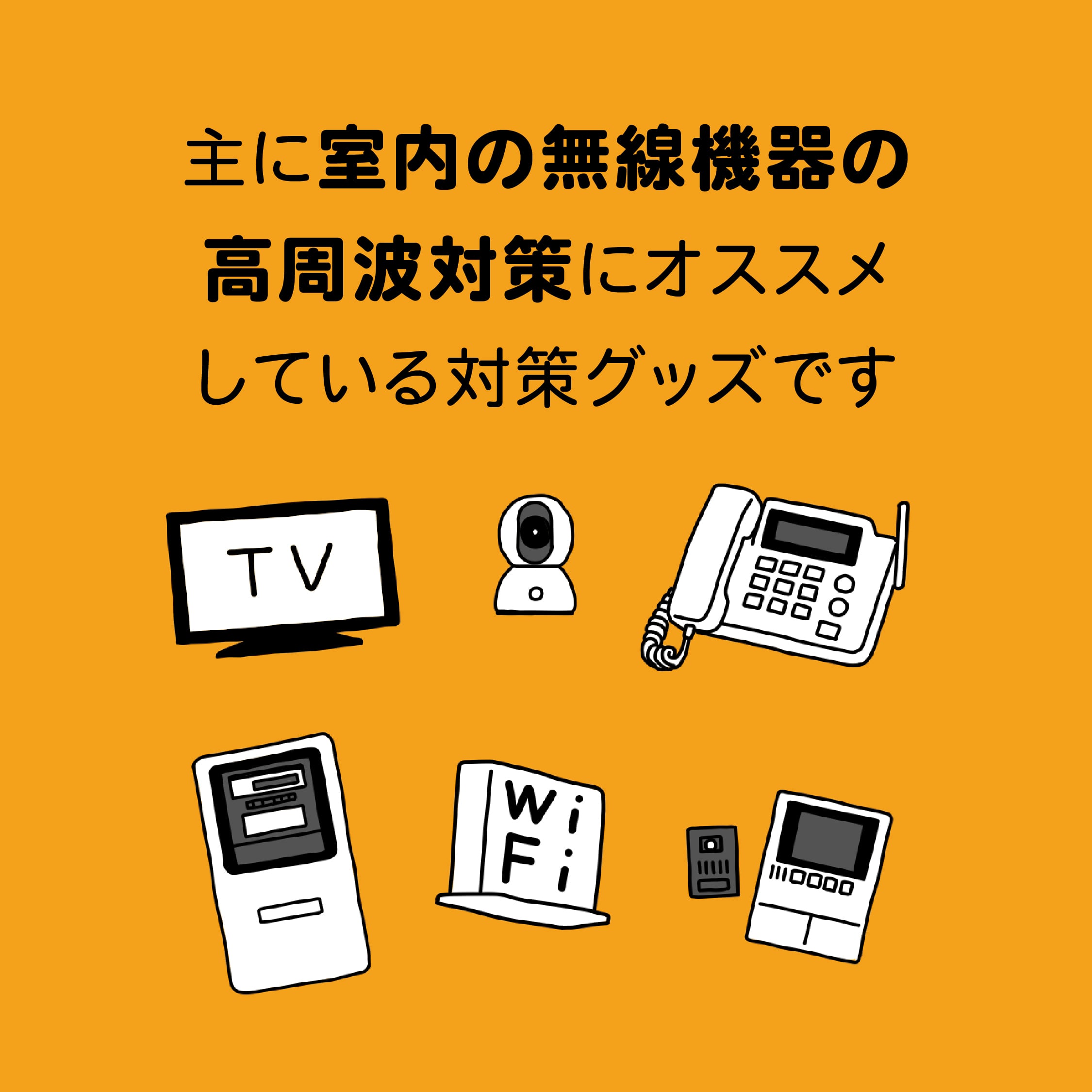 Wi-Fiルーター以外にも、コードレス子機付きのドアホンや固定電話、無線カメラ(ベビーモニター、ペットカメラ)など、「高周波吸収剤」が役に立つ家電はどんどん増えてきています。