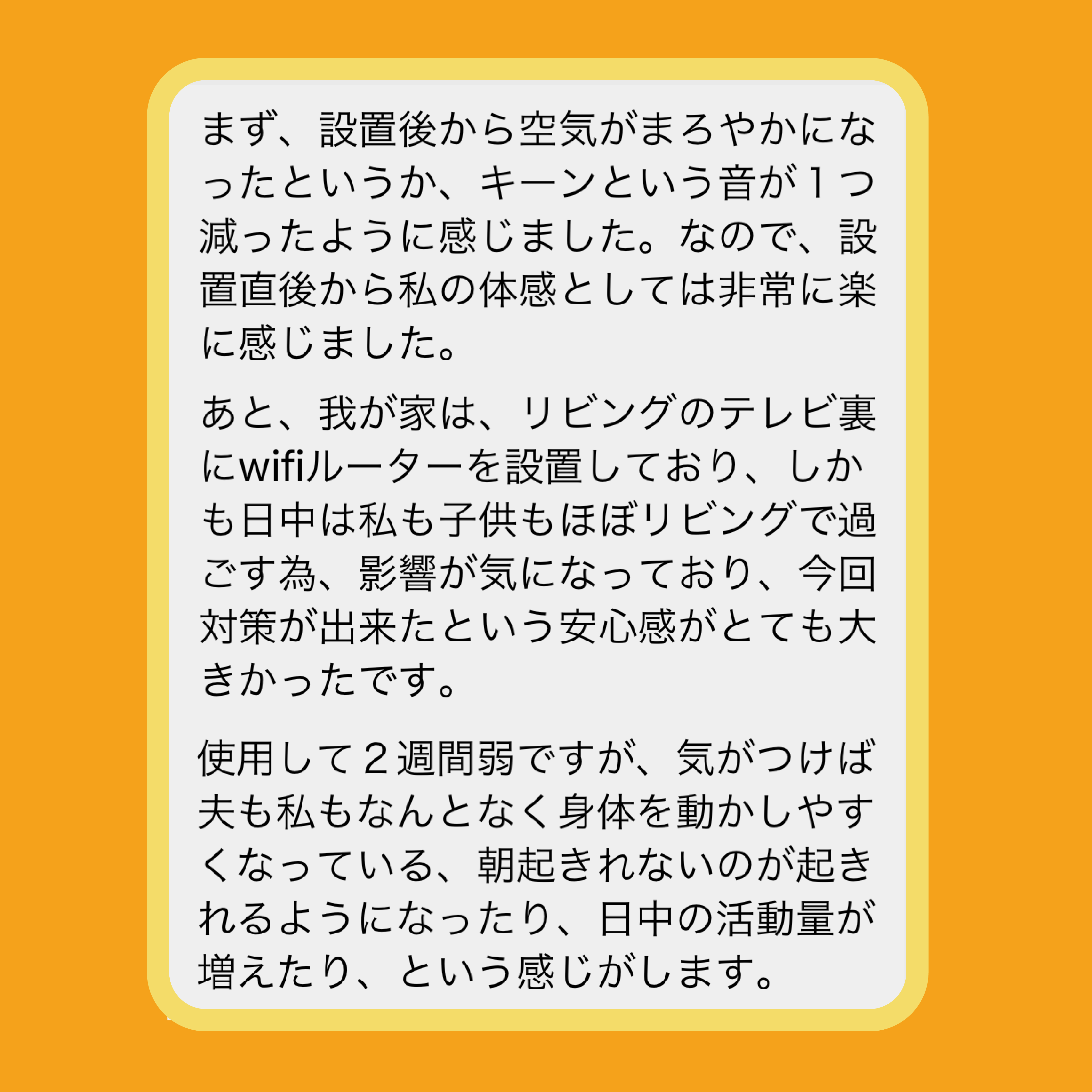 まずはお家の中のWi-Fiルーターが特に負担になりやすいと考えているので、ぜひWi-Fi対策から「吸収剤」を活用してみてください。