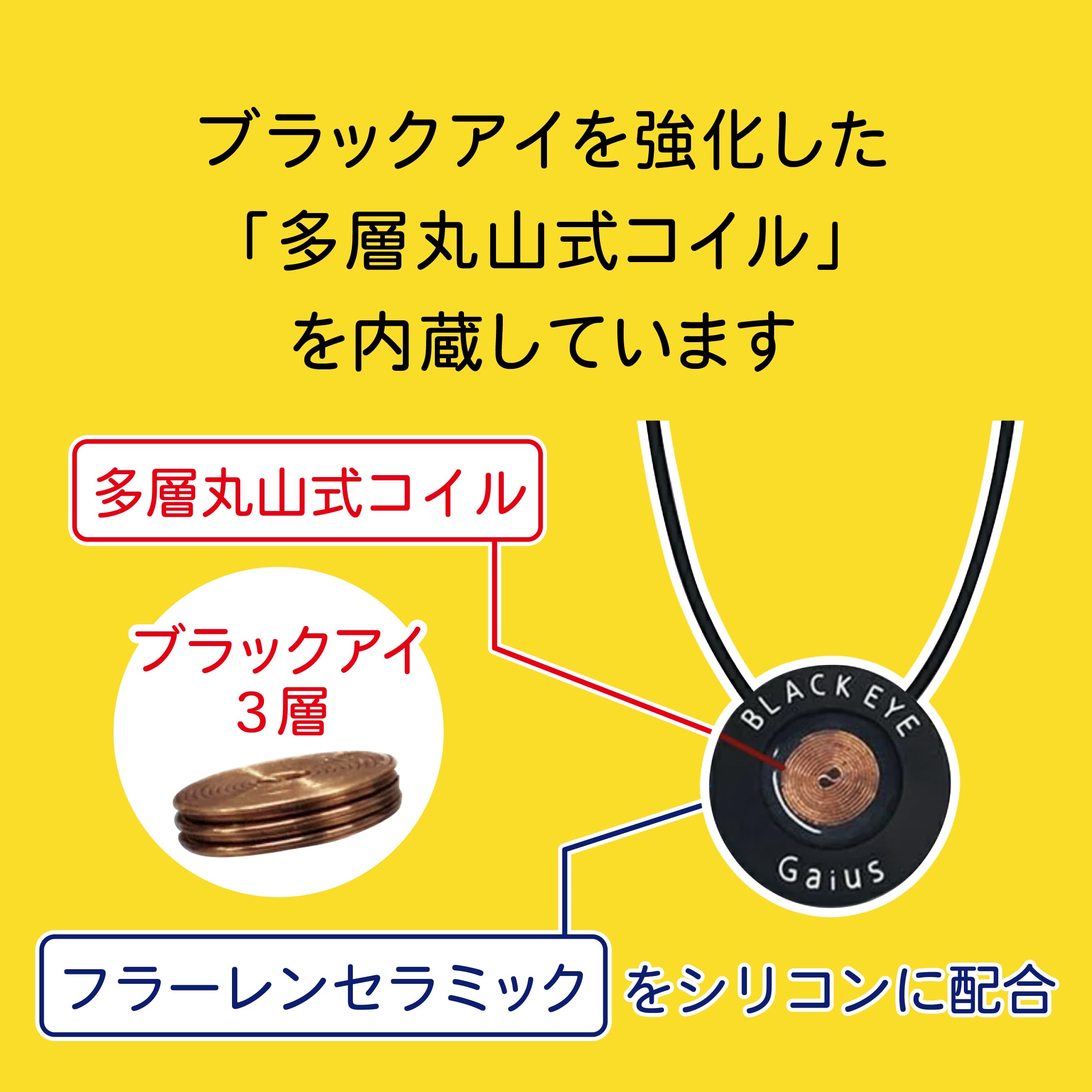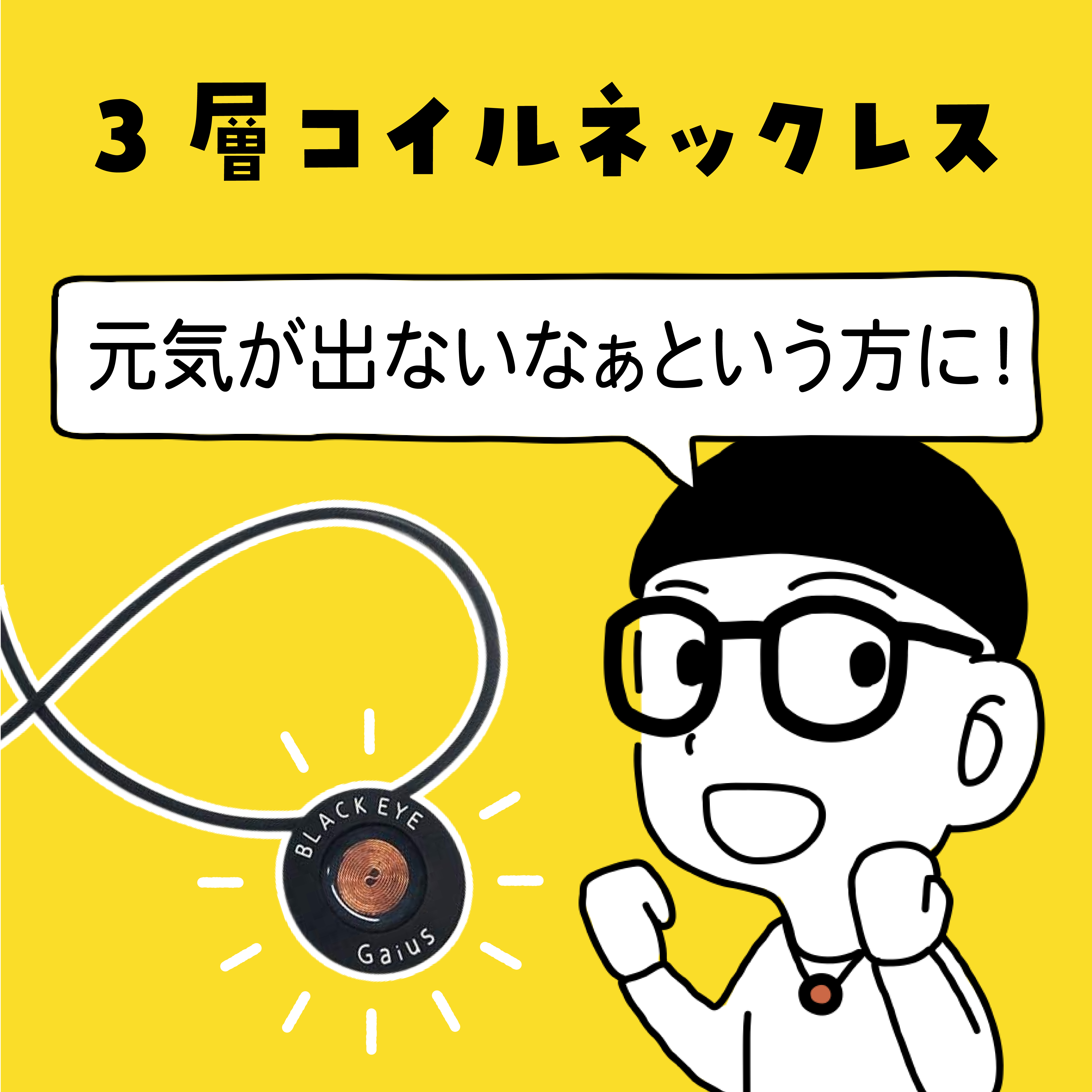 テープで貼る必要がある「ブラックアイ」と比べて、気軽に身につけることができて、効果を高めた「3層コイルネックレス」もご活用ください。